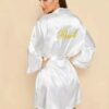Bata de satén, de largo medio con lazo para atar y mangas anchas 3/4. Combinalo con nuestros camisones de ajuar y tene un look completo para el día de tus preparativos.