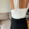 - Tirantes estilo musculosa, cubren buena parte del hombro