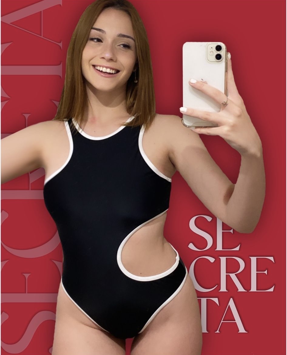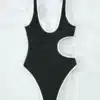 Diseño de cuello de corte asimétrico y una única abertura simétrica. Este traje de baño viene en color negro con un delicado detalle de blanco en los bordes. Estilo moderno. Ideal para usar con unos shorts y calzado blanco combinando las lineas del traje de baño.