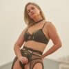 - Conjunto de 4 piezas (soutien, bombacha, arnés de red, cuello).